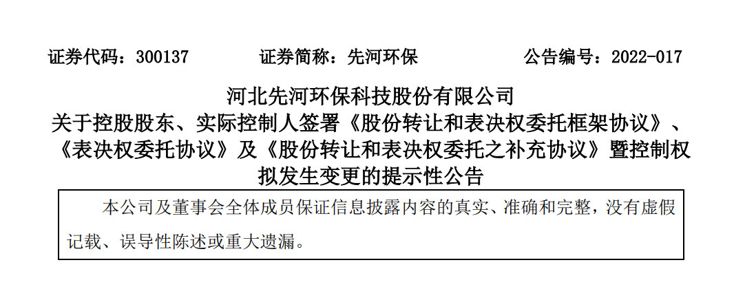 五一前后,環(huán)保行業(yè)大事不斷,前有博天環(huán)境和龍凈環(huán)保先后ST,后有先河環(huán)保控制權易主。5月4日晚間,先河環(huán)保公告稱,公司控股股東、實際控制人李玉國與青島清利新能源有限公司(下稱“清利新能源”)簽署協(xié)議,擬將其持有的先河環(huán)保的566.75萬股股份轉讓給清利新能源,同時還將其持有的先河環(huán)保5186.95萬...