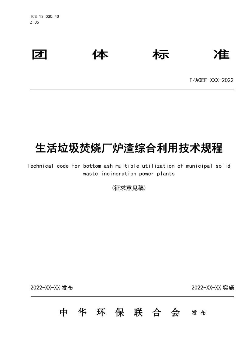 《生活垃圾焚燒廠爐渣綜合利用技術(shù)規(guī)程(征求意見稿)》團(tuán)標(biāo)發(fā)布!