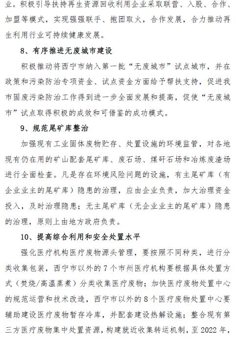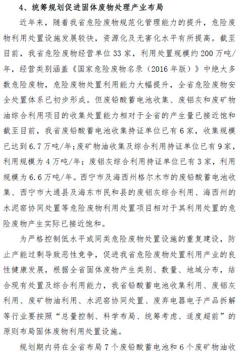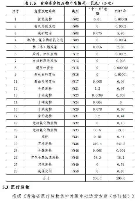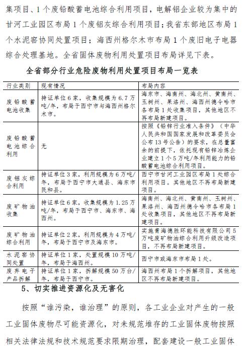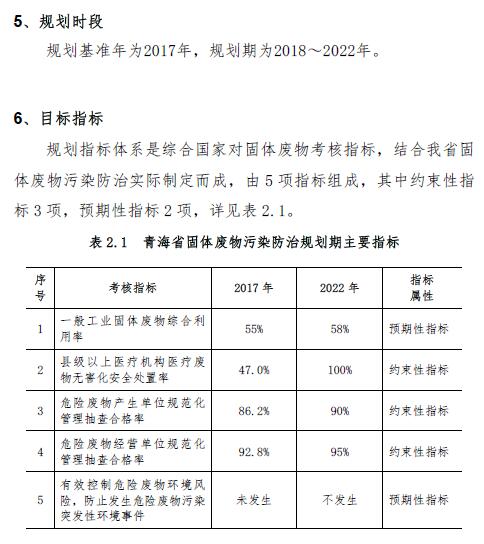 青海省固體廢物污染防治規(guī)劃(2018 年~2022 年)(征求意見(jiàn)稿)
