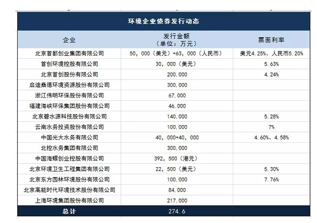 據(jù)權(quán)威媒體不完全統(tǒng)計,2018年以來,環(huán)保上市企業(yè)的債券發(fā)行規(guī)模至少達到274.6億元人民幣,跟小編來具體了解一下吧~