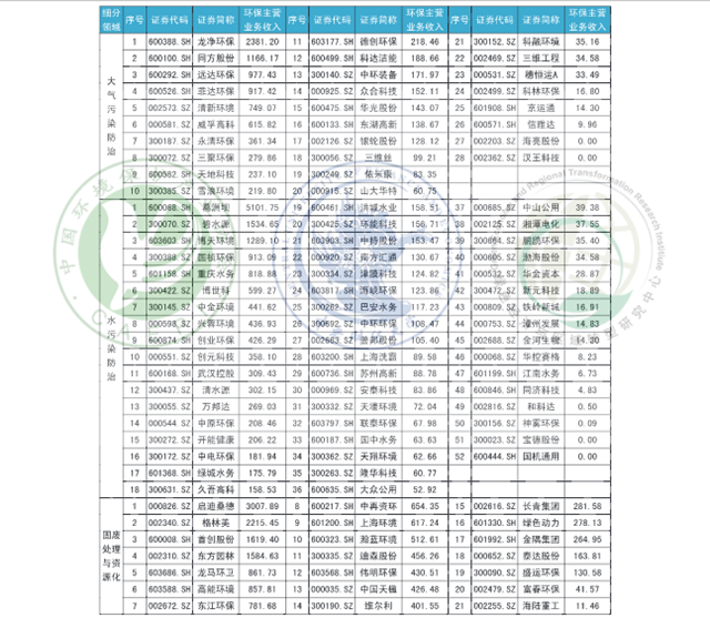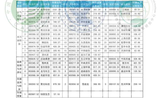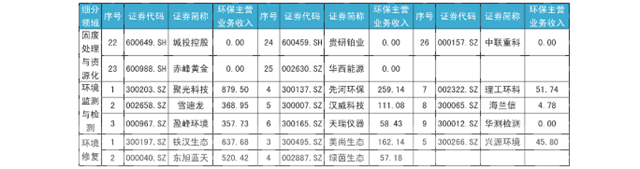 附錄B 2018年第三季度A股環(huán)保上市企業(yè)細(xì)分領(lǐng)域環(huán)保主營業(yè)務(wù)收入情況(單位:百萬元)