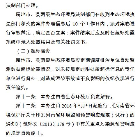 日前,河南印發(fā)《河南省污染源自動(dòng)監(jiān)測(cè)數(shù)據(jù)超標(biāo)處置辦法(征求意見稿)》。全文如下: