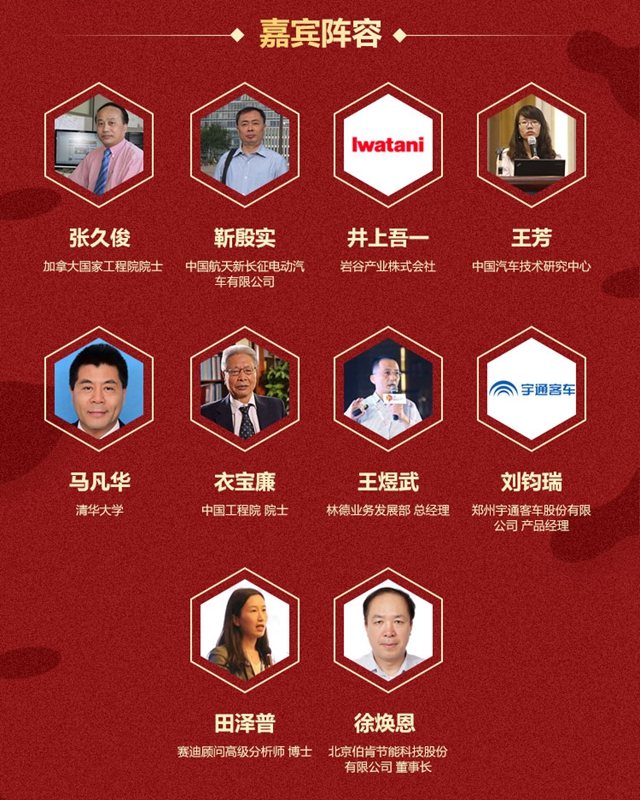 本次峰會主席將由中國航天新長征電動汽車有限公司航天專家靳殷實擔(dān)任,屆時,中國工程院院士衣寶廉、加拿大三院院士張久俊、清華大學(xué)教授馬凡華、中國汽車技術(shù)研究中心首席專家王芳、工信部賽迪工業(yè)和信息化研究院田小田、巖谷產(chǎn)業(yè)株式會社央研究所部長井上吾一、鄭州宇通客車股份有限公司劉鈞瑞、德國林德氣體王煜武等數(shù)十多位業(yè)內(nèi)領(lǐng)軍人物將發(fā)表主題演講。