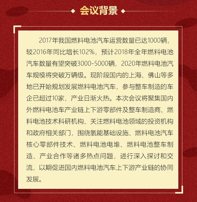 本次會議面向燃料電池車全產(chǎn)業(yè)鏈,聚集了國內(nèi)外燃料電池車產(chǎn)業(yè)鏈上下游零部件及整車制造商、燃料電池技術(shù)科研機(jī)構(gòu)、關(guān)注燃料電池領(lǐng)域的投資機(jī)構(gòu)和政府相關(guān)部門及行業(yè)媒體等,預(yù)計參會人數(shù)600+。