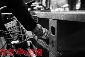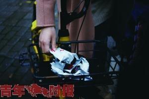 因周圍無垃圾桶,市民將垃圾暫放在自行車車籃內。