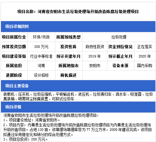 中項網(wǎng)獨家授權(quán)北極星固廢網(wǎng)發(fā)布最新垃圾處理項目(2019年1月14日更新),其中包括垃圾填埋場項目、餐廚垃圾處理項目、生活垃圾中轉(zhuǎn)站建設(shè)項目等。具體內(nèi)容如下: