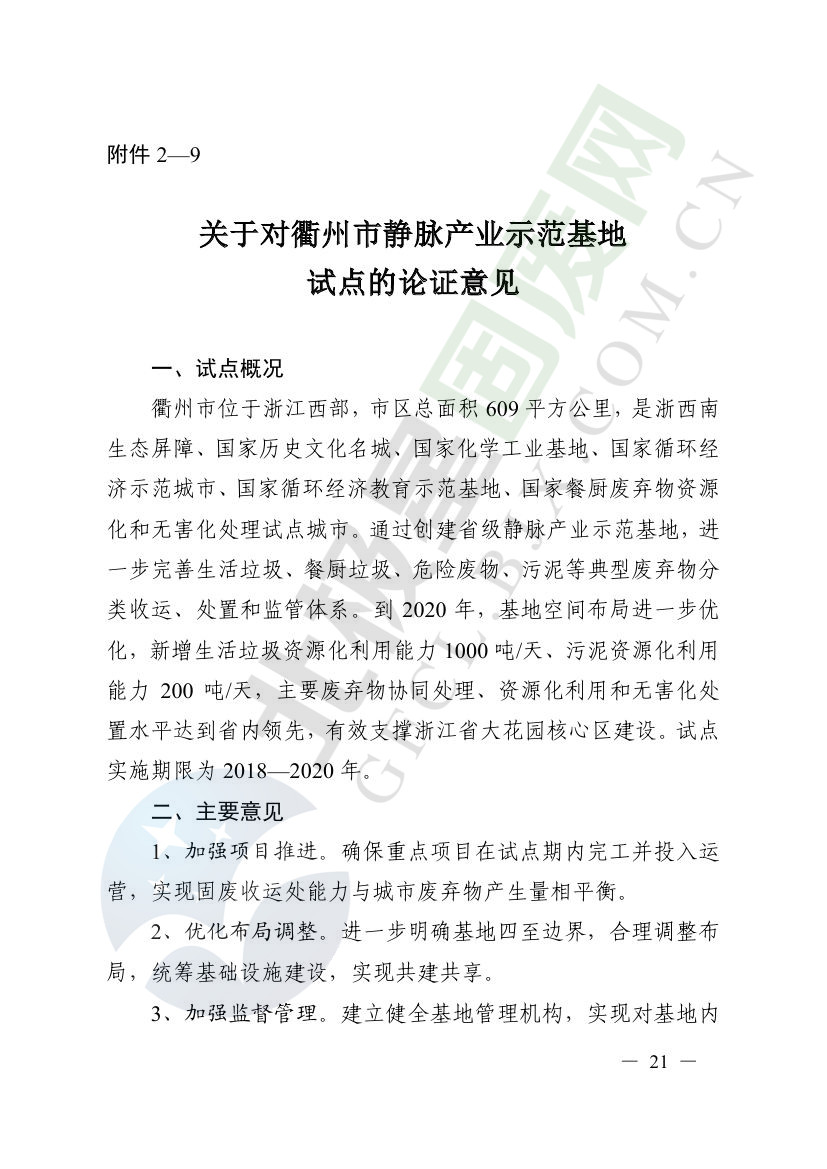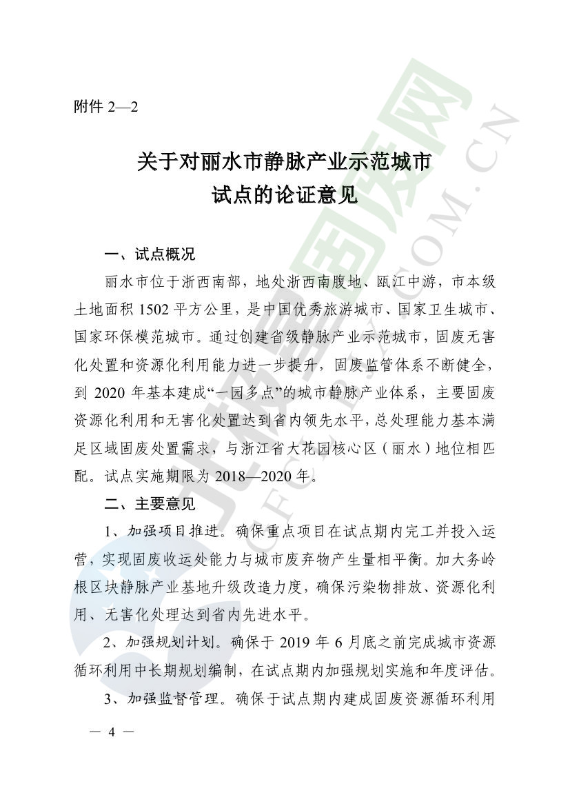 一、原則同意麗水市等8個城市和衢州市等3個基地的試點實施方案,并確定麗水市等4個城市為省級靜脈產(chǎn)業(yè)示范城市試點(創(chuàng)建類),衢州市等2個基地為省級靜脈產(chǎn)業(yè)示范基地試點(創(chuàng)建類),金華市等4個城市為省級靜脈產(chǎn)業(yè)示范城市試點(培育類),臺州市為省級靜脈產(chǎn)業(yè)示范基地試點(培育類),具體名單詳見附件1。請根據(jù)意見(附件2)認(rèn)真修改完善試點方案,于12月22日前將修改完善后的實施方案(附光盤)(一式2份)報送省發(fā)展改革委、省財政廳、省生態(tài)環(huán)境廳、省建設(shè)廳、省農(nóng)業(yè)農(nóng)村廳、省商務(wù)廳備案。