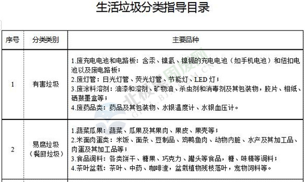 各地應(yīng)將生活垃圾按照有害垃圾、易腐垃圾、可回收物、其他垃圾進(jìn)行分類,并建立與分類品種相適應(yīng)的分類投放、分類收集、分類運(yùn)輸、分類處置設(shè)施體系。