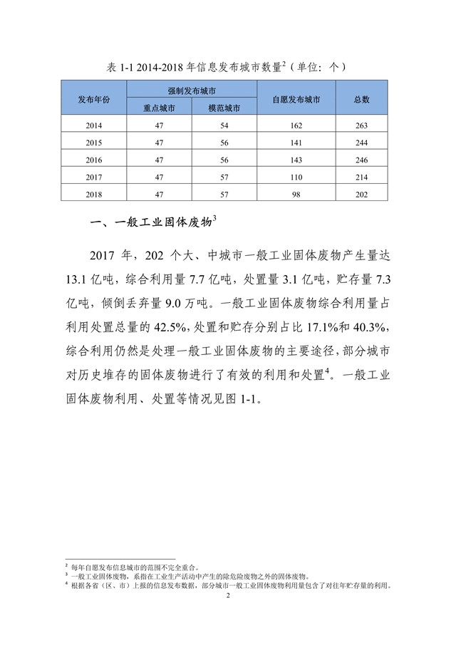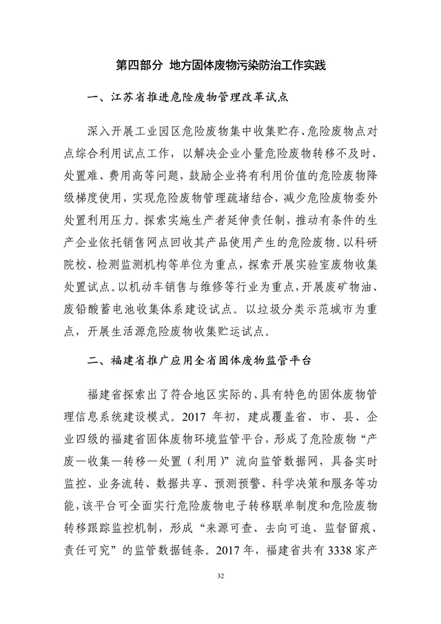 生態(tài)環(huán)境部發(fā)布了《2018年全國(guó)大、中城市固體廢物污染環(huán)境防治年報(bào)》,從大中城市信息發(fā)布、重點(diǎn)工作進(jìn)展、能力建設(shè)以及地方工作實(shí)踐等方面,系統(tǒng)介紹了我國(guó)固體廢物污染環(huán)境防治工作的相關(guān)情況。2014 年以來(lái),為促進(jìn)環(huán)境信息公開(kāi)、增進(jìn)社會(huì)公眾參與, 生態(tài)環(huán)境部(原環(huán)境保護(hù)部)每年定期以年報(bào)形式發(fā)布固體廢物污染環(huán)境防治信息。