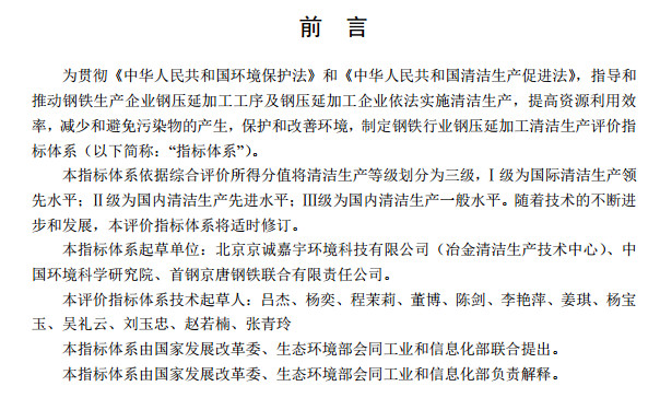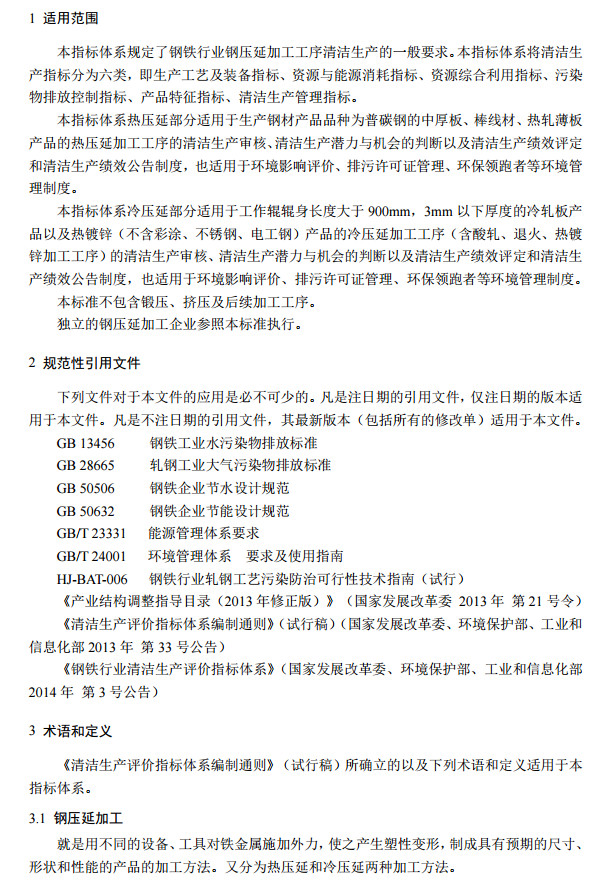 近日,國家發(fā)改委發(fā)布了鋼鐵行業(yè)(鋼延壓加工)清潔生產(chǎn)評(píng)價(jià)指標(biāo)體系,該政策對(duì)于鋼延壓加工工序中的大氣污染物排放量、水污染物排放量、固體廢物處置方面都進(jìn)行了說明,全文如下: