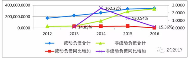 由于公司內(nèi)部的資金流動水平不高,2014年,2015年籌資力度加大,期間利用短期融資券和定向工具多次募資。同期長期負債也明顯增加,長期債務占比接近約40%,2015年籌資資金流凈額同比增加323.73%,賬面余額已經(jīng)接近40億元。