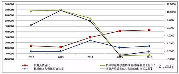 觀察營運資本情況,公司近幾年的長期債務/營運資本接近或高于1。2015年營運資本周轉(zhuǎn)率同比降低85%,波動明顯。企業(yè)自由現(xiàn)金流進一步說明了公司償債水平:自2012年已處于流出狀態(tài),2015年流出凈額達到數(shù)十億級,同比增長高達388%。