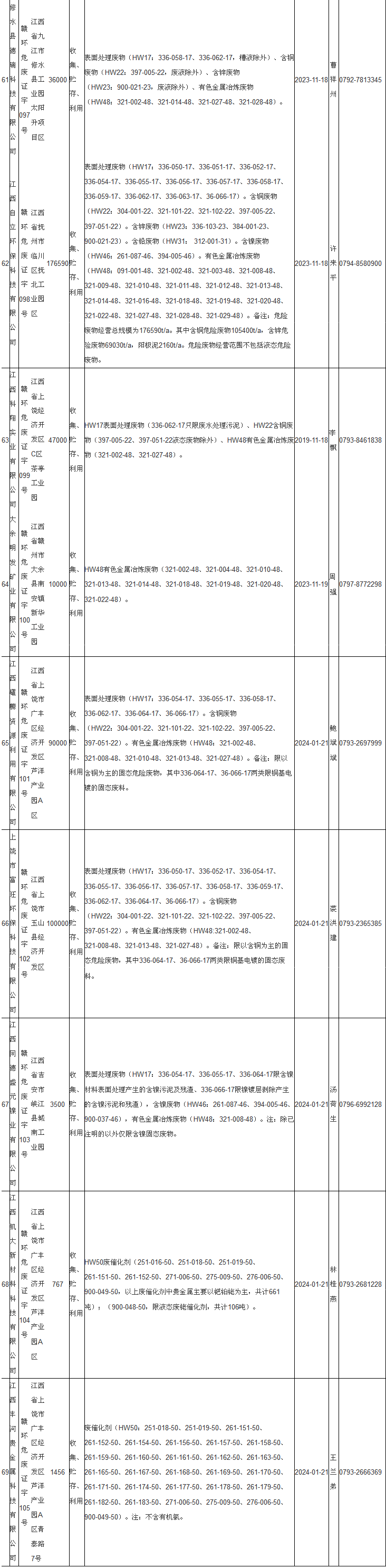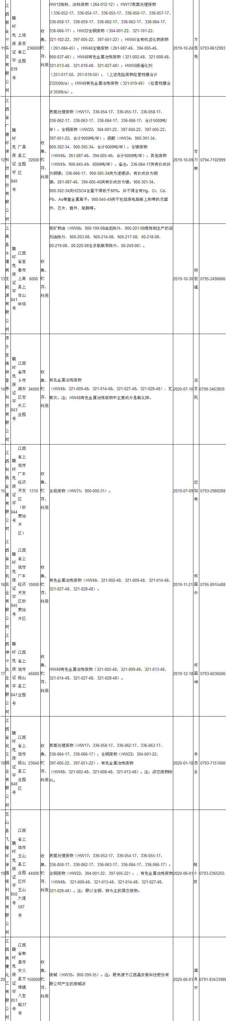 日前江西省生態(tài)環(huán)境廳發(fā)布了危險(xiǎn)廢物經(jīng)營許可證名單,其中涉及69家公司,具體內(nèi)容如下: