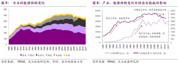 能源結(jié)構(gòu)對大氣污染關(guān)鍵性指標(biāo)和綠色發(fā)展方向的判斷很關(guān)鍵,日本在工業(yè)化階段能源需求快速增加,也曾經(jīng)面臨酸雨、霧霾等問題,并與之進(jìn)行了長期斗爭,隨著治污設(shè)備的增加以及產(chǎn)業(yè)的轉(zhuǎn)型,日本的大氣環(huán)境有了很大的改善。當(dāng)前,大氣治理的重心也逐步從煙氣治理轉(zhuǎn)到汽車尾氣治理以及發(fā)展新能源汽車方面。