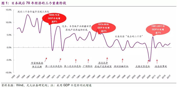日本在“二戰(zhàn)”后的70多年時(shí)間里,取得了舉世矚目的經(jīng)濟(jì)騰飛,在亞洲國家中,率先進(jìn)入發(fā)達(dá)國家之列,也完成了工業(yè)化、城鎮(zhèn)化的進(jìn)程;在這期間,日本也經(jīng)歷了較完整的經(jīng)濟(jì)周期及產(chǎn)業(yè)、能源結(jié)構(gòu)轉(zhuǎn)型。環(huán)保產(chǎn)業(yè)既是工業(yè)、市政發(fā)展的重要衍生需求,也是約束宏觀經(jīng)濟(jì)的資源要素。本篇報(bào)告中,我們將透過日本的經(jīng)濟(jì)周期,詳細(xì)分析日本在發(fā)展中所面對的環(huán)境污染問題、環(huán)保政策的歷程以及環(huán)保市場的演變。