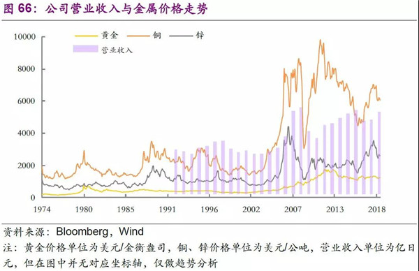 公司的營業(yè)收入與金屬價(jià)格走勢有著較強(qiáng)的聯(lián)系,主要因?yàn)楣镜囊睙挕h(huán)保與循環(huán)再生、以及金屬加工業(yè)務(wù)均受到銅、鋅等金屬材料價(jià)格的直接影響:公司的冶煉業(yè)務(wù)以及環(huán)保中的循環(huán)利用業(yè)務(wù)中,銅、鋅等金屬材料的價(jià)格上漲直接利好公司營業(yè)收入的增長;而公司的金屬加工業(yè)務(wù)中,銅、鋅作為其原材料,在一定程度上亦會(huì)影響公司成本。由于公司冶煉、環(huán)保與循環(huán)再生業(yè)務(wù)的營業(yè)收入占比較大,總的來看金屬價(jià)格的走高有利于公司營業(yè)收入的穩(wěn)步增長(如2007、08年銅、鋅價(jià)格走高帶動(dòng)公司營業(yè)收入高增長)。