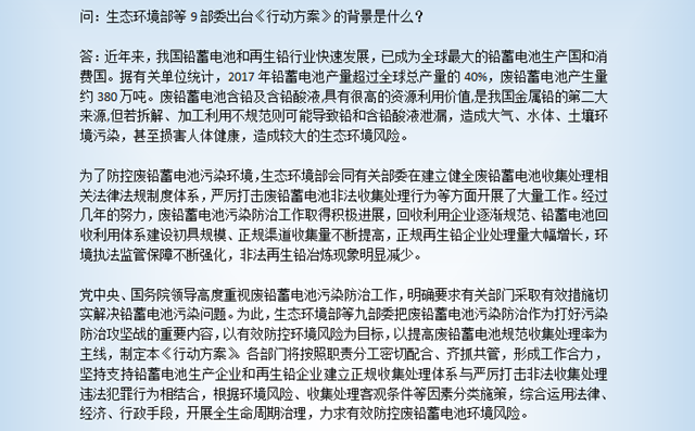 附生態(tài)環(huán)境部就《廢鉛蓄電池污染防治行動(dòng)方案》有關(guān)問(wèn)題答記者問(wèn)全文