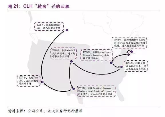 CLH通過這次并購一舉成為美國最大的危廢處置公司,奠定了危廢行業(yè)新的競爭格局。在這次行業(yè)洗牌中,傳統(tǒng)巨頭企業(yè)受到的沖擊較大,由于體量較大較難通過適時的調(diào)整及時止損,而受沖擊較小的中小企業(yè)反而通過合理并購成為新巨頭,如CLH。