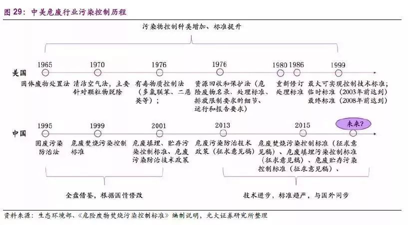 在中國對危廢污染進行控制的時期,美國相關(guān)產(chǎn)業(yè)已發(fā)展成熟。因此,中國在短短幾年內(nèi)先后推出危廢焚燒、填埋、貯存污染控制標準,同時對危廢名錄和跨省轉(zhuǎn)移審批制度進行借鑒,建立起整套相對成熟的技術(shù)和標準體系。