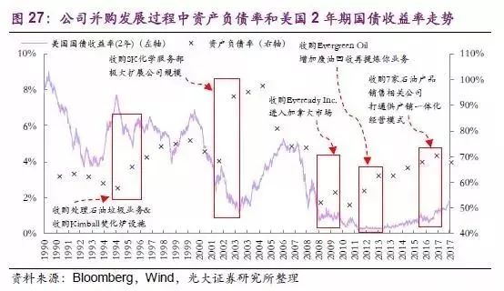 (1)內(nèi)因:發(fā)展戰(zhàn)略清晰,并購時機得當。從早期的“橫向”并購穩(wěn)步擴大公司規(guī)模,到危廢行業(yè)轉(zhuǎn)型期抓住機會并購SK 一舉做大公司體量,再到危廢成熟期的跨行業(yè)并購多元化發(fā)展穩(wěn)固公司危廢處理龍頭地位,公司在不同階段的發(fā)展戰(zhàn)略十分清晰;同時公司的幾個重要并購均處在融資成本相對合理的時期,資產(chǎn)負債率雖然在并購發(fā)生時有所提升,但后續(xù)的管控使得資產(chǎn)負債率一直處于相對平穩(wěn)水平。