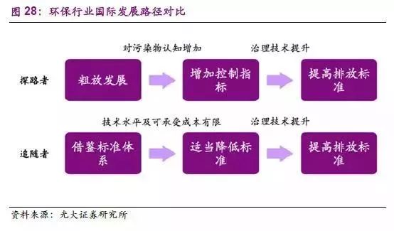 以美國為首的發(fā)達國家的環(huán)保意識隨著工業(yè)的大力發(fā)展率先覺醒,開始針對工業(yè)污染物制定相關(guān)標準。隨著對污染物的認知上升,行業(yè)標準趨于嚴格,技術(shù)規(guī)范性也逐步提高。到二十世紀90年代,發(fā)達國家的探路者之旅已經(jīng)基本形成。以中國為代表的發(fā)展中國家雖然在環(huán)保行業(yè)起步較晚,但卻有一整套行業(yè)標準和技術(shù)規(guī)范可以借鑒,扮演著追隨者的角色。