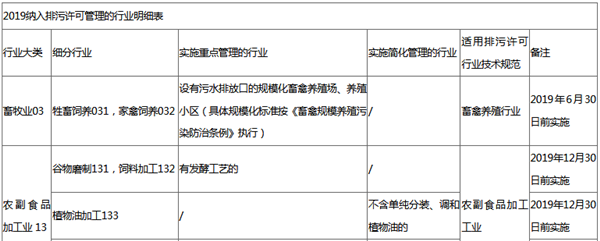 (三)《管理名錄》中實(shí)施時限為2019年底前且已經(jīng)建成并實(shí)際排污的排污單位,在2019年6月30日前申請并取得排污許可證;在2019年6月30日后建成的排污單位,在啟動生產(chǎn)設(shè)施或者在實(shí)際排污之前申請并取得排污許可證?!豆芾砻洝分袑?shí)施時限為2020年底前且已經(jīng)建成并實(shí)際排污的排污單位,在2019年12月31日前申請并取得排污許可證;在2019年12月31日后建成的排污單位,在啟動生產(chǎn)設(shè)施或者在實(shí)際排污之前申請并取得排污許可證。