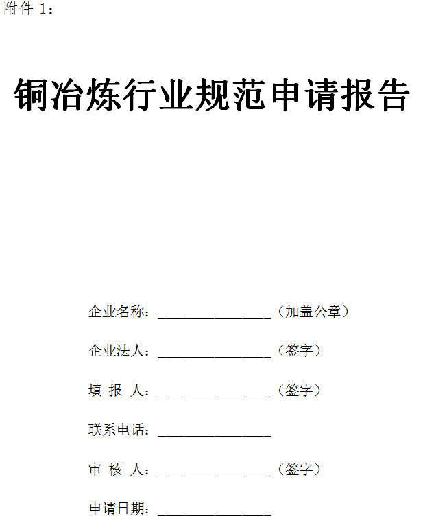 2.凡已建成投產(chǎn)1年以上(含1年)的銅冶煉企業(yè),均可依據(jù)《銅冶煉行業(yè)規(guī)范條件》申請(qǐng)審核。申請(qǐng)規(guī)范企業(yè)須編制《銅冶煉行業(yè)規(guī)范申請(qǐng)報(bào)告》(見(jiàn)附件1),并按要求提供相關(guān)材料,企業(yè)法人(或代表)、填報(bào)人和審核人須對(duì)申請(qǐng)材料的完整真實(shí)性負(fù)責(zé)并承擔(dān)相應(yīng)責(zé)任。