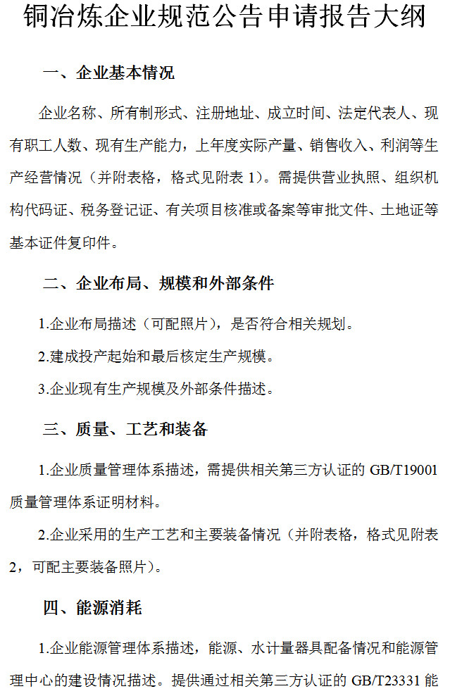 (一)銅冶煉行業(yè)企業(yè)規(guī)范條件的申請(qǐng)、審核及公告