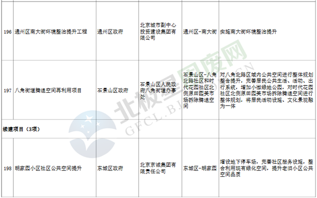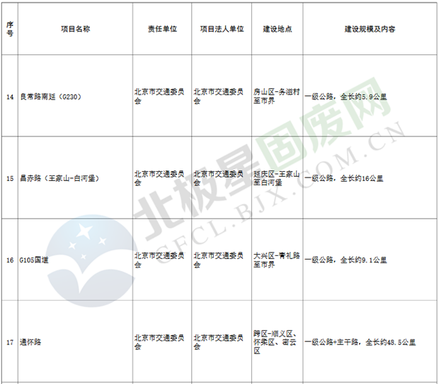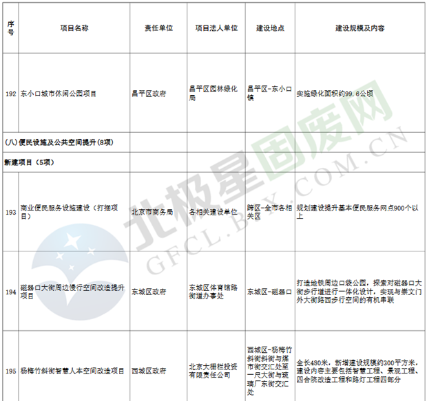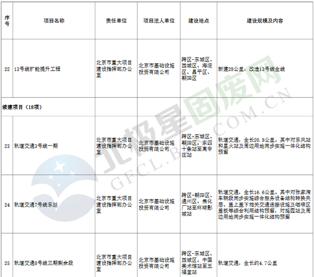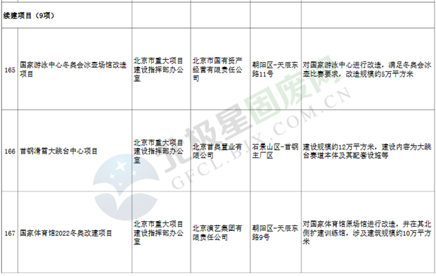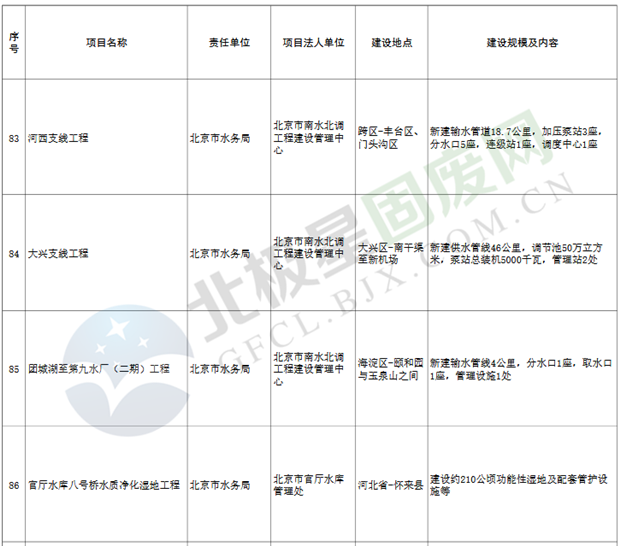 9.垃圾處理設(shè)施項(xiàng)目3個(gè),重點(diǎn)實(shí)施豐臺(tái)區(qū)循環(huán)經(jīng)濟(jì)產(chǎn)業(yè)園滲瀝液處理廠二期工程、朝陽(yáng)區(qū)建筑垃圾資源化處置項(xiàng)目等。