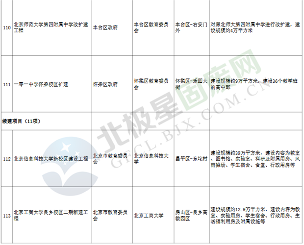 11.教育項(xiàng)目20個(gè),重點(diǎn)實(shí)施中國(guó)人民大學(xué)通州新校區(qū)一期建設(shè)項(xiàng)目、北京學(xué)校等;