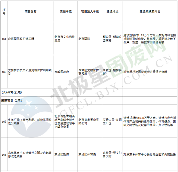 15.體育項(xiàng)目11個(gè),重點(diǎn)實(shí)施國(guó)家速滑館、回龍觀文化體育公園等;