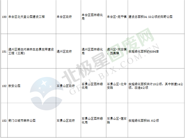 16.綠化項(xiàng)目19個(gè),重點(diǎn)實(shí)施城市綠心園林綠化工程、溫榆河公園朝陽(yáng)示范區(qū)等;