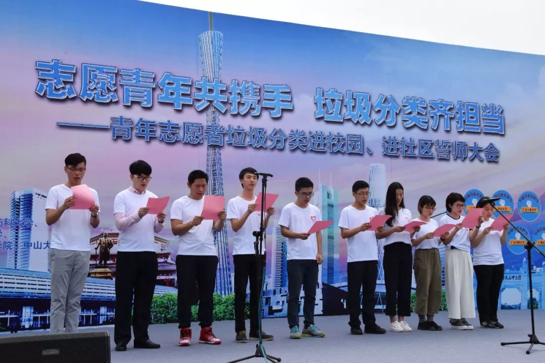 2017年5月6日,廣州市番禺區(qū)大學城中心湖公園召開“志愿青年共攜手,垃圾分類齊擔當”為主題的青年志愿者垃圾分類進校園、進社區(qū)誓師大會,大學生宣誓現(xiàn)場 。