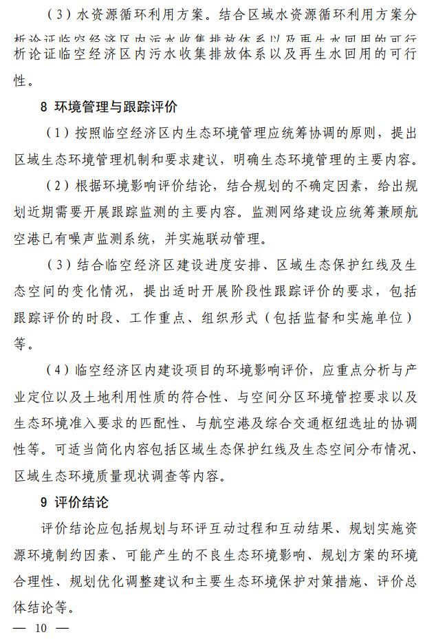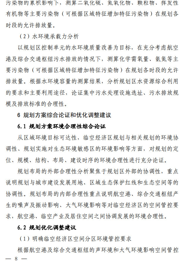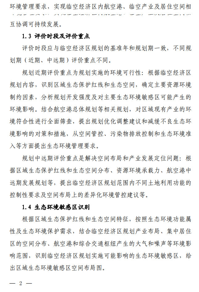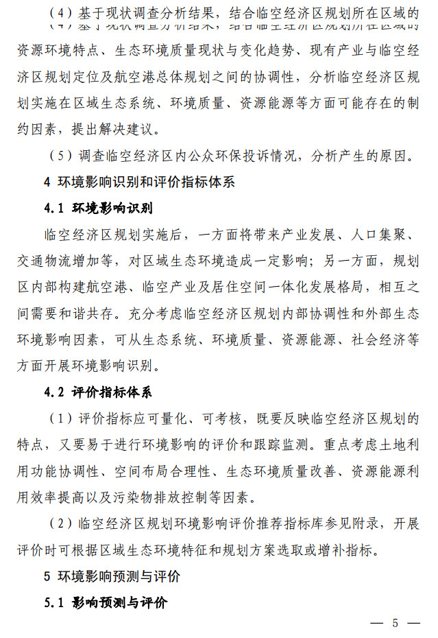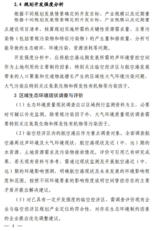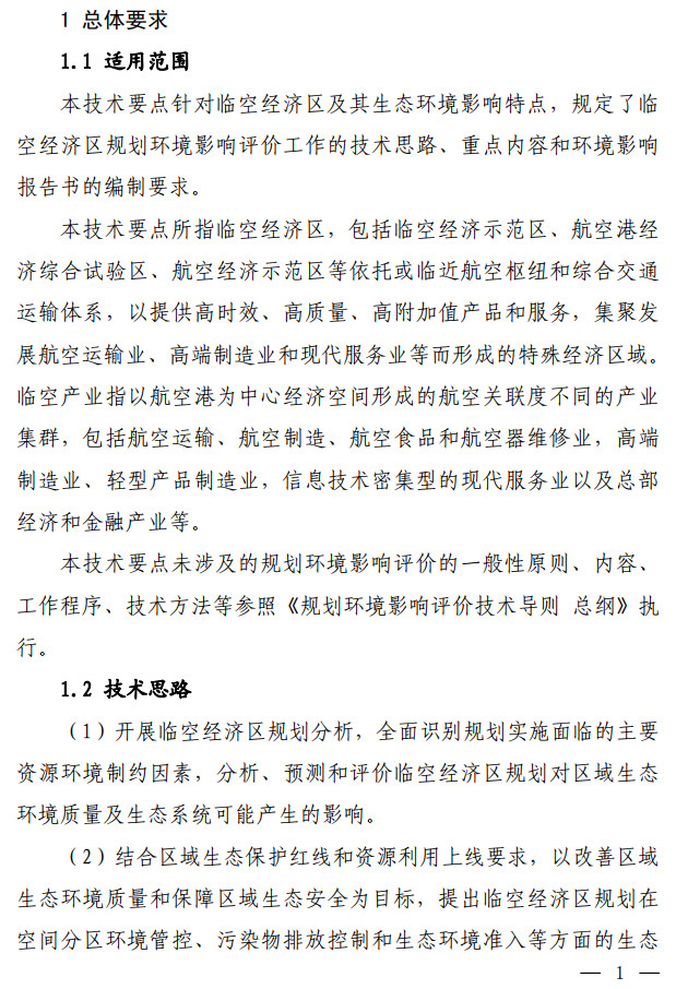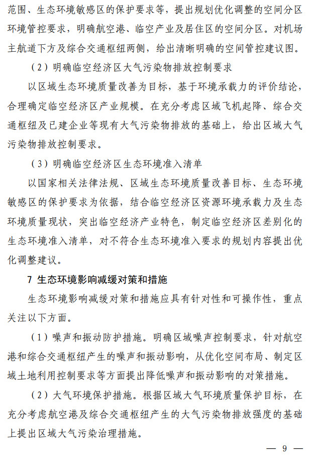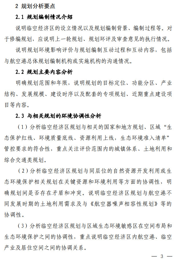 生態(tài)環(huán)境部發(fā)布了關(guān)于印發(fā)《臨空經(jīng)濟(jì)區(qū)規(guī)劃環(huán)境影響評(píng)價(jià)技術(shù)要點(diǎn)(試行)》的通知,該文件說明了全面調(diào)查航空港周邊聲環(huán)境及大氣環(huán)境現(xiàn)狀,航空港現(xiàn)狀及近(中、遠(yuǎn))期的水資源、土地資源需求及污染物排放情況。評(píng)價(jià)可引用已有研究成 果,若無現(xiàn)有資料可參考,需通過現(xiàn)狀監(jiān)測及開展航空港近(中、 遠(yuǎn))期的環(huán)境影響預(yù)測,明確航空港現(xiàn)狀及未來發(fā)展的環(huán)境影響程 度和范圍。按照不同環(huán)境要素的影響程度說明空間管控存在的主要矛盾并提出解決建議。全文如下: