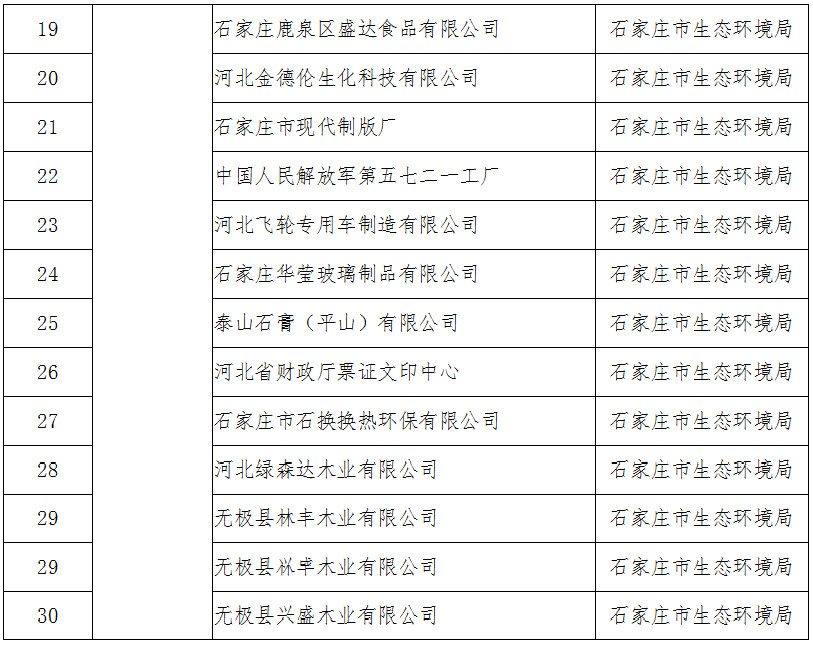 河北省2019年度開展強制性清潔生產(chǎn)審核企業(yè)名單
