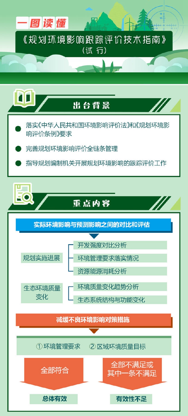近日,生態(tài)環(huán)境部印發(fā)了《規(guī)劃環(huán)境影響跟蹤評價技術(shù)指南》(試行),這是落實《環(huán)境影響評價法》《規(guī)劃環(huán)境影響評價條例》要求,主動強(qiáng)化指導(dǎo)和服務(wù),完善規(guī)劃環(huán)境影響評價全鏈條管理的重要舉措。