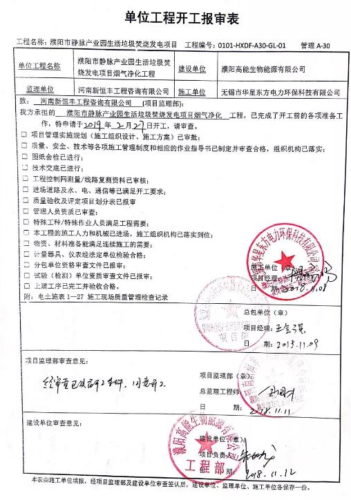 無錫華星東方電力環(huán)保(簡稱"華星東方")承建的河南濮陽2x500t/d生活垃圾焚燒發(fā)電項目煙氣凈化工程于2019年2月27號開工建設,現已進入主體吊裝環(huán)節(jié)。該項目一期建設2臺500t/d機械爐排爐,煙氣處理采用SNCR脫硝系統(tǒng)+干法消石灰噴射+旋轉噴霧脫酸反應塔+袋式除塵+活性炭吸附+SCR脫硝系統(tǒng)+飛灰輸送和儲存的組合工藝,預留二期1臺500t/d焚燒線及煙氣凈化線安裝位置,為華星東方EPC項目。