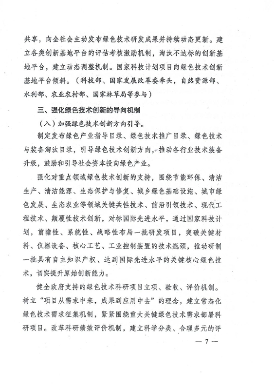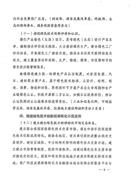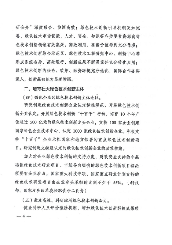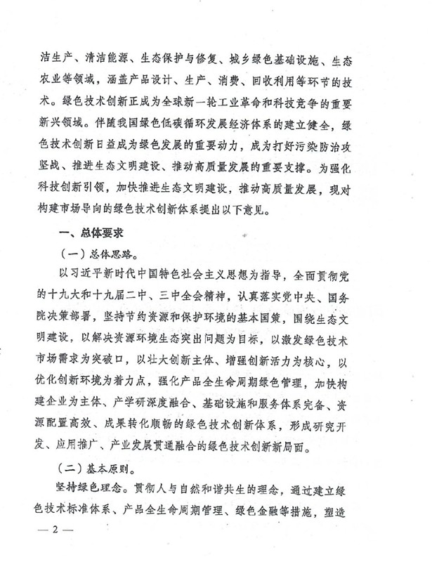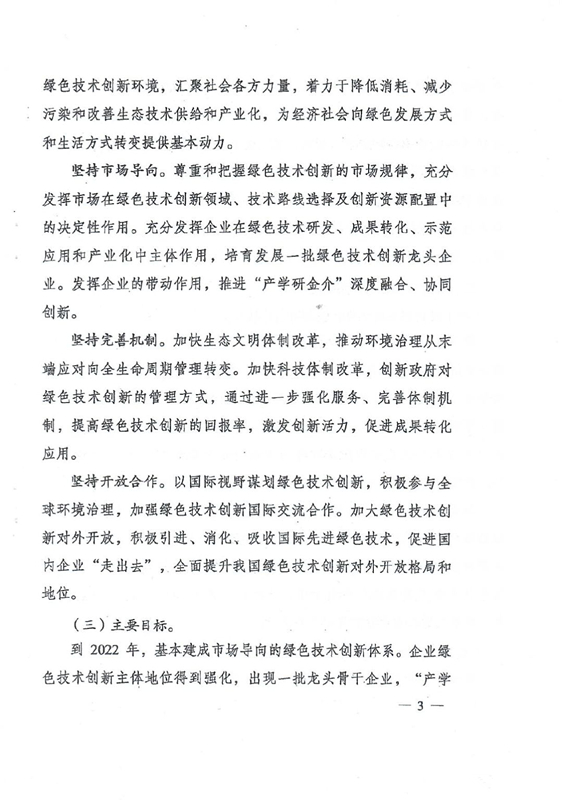 綠色技術(shù)創(chuàng)新是綠色發(fā)展的重要?jiǎng)恿?,是打好污染防治攻?jiān)戰(zhàn)、推進(jìn)生態(tài)文明建設(shè)、促進(jìn)高質(zhì)量發(fā)展的重要支撐。要以解決資源環(huán)境生態(tài)突出問(wèn)題為目標(biāo),堅(jiān)持市場(chǎng)導(dǎo)向,強(qiáng)化綠色引領(lǐng),加快構(gòu)建企業(yè)為主體、產(chǎn)學(xué)研深度融合、基礎(chǔ)設(shè)施和服務(wù)體系完備、資源配置高效、成果轉(zhuǎn)化順暢的綠色技術(shù)創(chuàng)新體系,推動(dòng)研究開(kāi)發(fā)、應(yīng)用推廣、產(chǎn)業(yè)發(fā)展貫通融合。