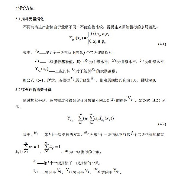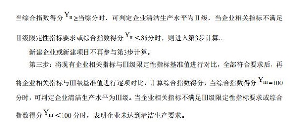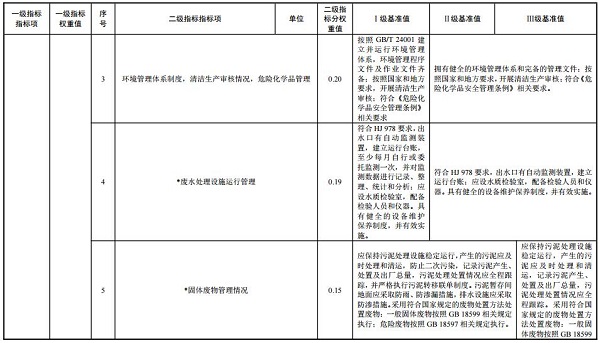 本指標(biāo)體系依據(jù)綜合評(píng)價(jià)所得分值將清潔生產(chǎn)等級(jí)劃分為三級(jí),Ⅰ級(jí)為國(guó)際清潔生產(chǎn)領(lǐng)先水平;Ⅱ級(jí)為國(guó)內(nèi)清潔生產(chǎn)先進(jìn)水平;Ⅲ級(jí)為國(guó)內(nèi)清潔生產(chǎn)一般水平。隨著技術(shù)的不斷進(jìn)步和發(fā)展,本評(píng)價(jià)指標(biāo)體系將適時(shí)修訂。