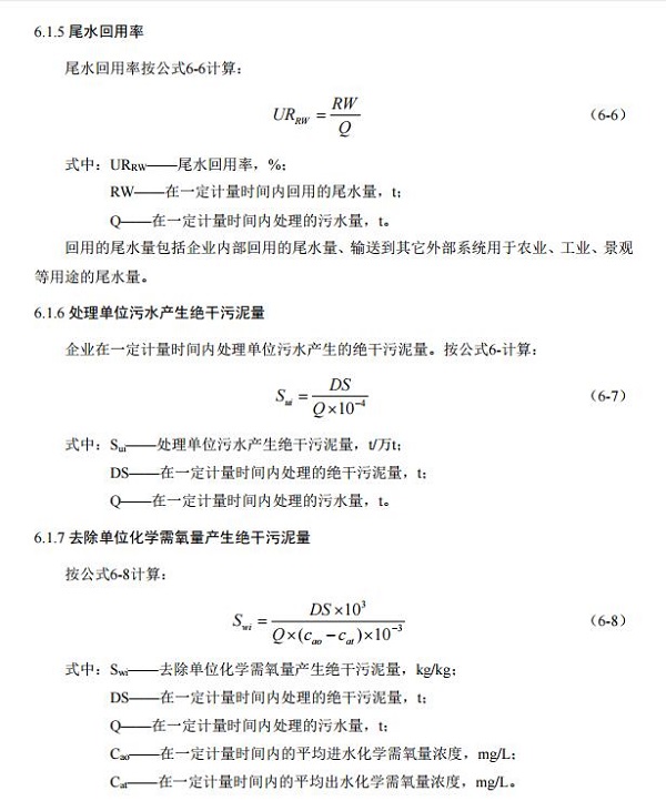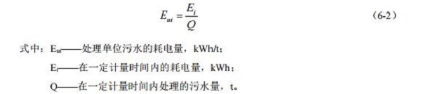 企業(yè)在一定計(jì)量時(shí)間內(nèi)處理單位污水需要消耗的用電量,耗電量?jī)H計(jì)算處理污水達(dá)到要求的排放標(biāo)準(zhǔn)時(shí)所消耗的電量,不含再生利用過(guò)程消耗的電能(同時(shí)包括辦公使用的耗電量,不包括基建、生活用耗電量等)。按公式6-2計(jì)算: