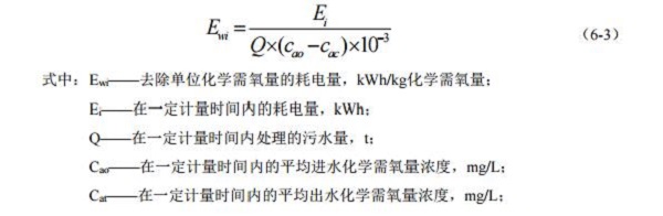 企業(yè)在一定計(jì)量時(shí)間內(nèi)處理單位化學(xué)需氧量需要消耗的用電量,耗電量?jī)H計(jì)算處理污水達(dá)到要求的排放標(biāo)準(zhǔn)時(shí)所消耗的電量,不含再生利用過(guò)程消耗的電能(同時(shí)包括辦公使用的耗電量,不包括基建、生活用耗電量等)。按公式6-3計(jì)算: