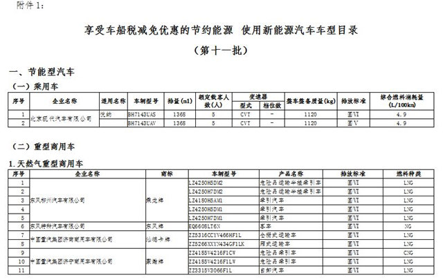 原標題:關(guān)于對《享受車船稅減免優(yōu)惠的節(jié)約能源 使用新能源汽車車型目錄》(第十一批)的公示