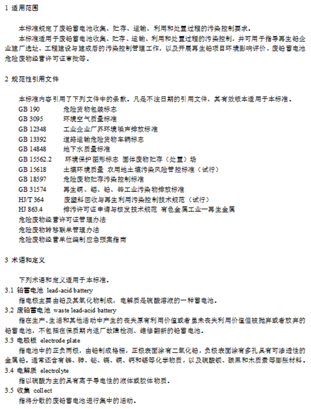 2.廢鉛蓄電池處理污染控制技術規(guī)范(征求意見稿)