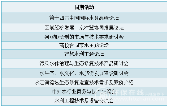 單有展品不足以體現(xiàn)2019中國(guó)水博覽會(huì)的專業(yè),展會(huì)同期,第十四屆中國(guó)國(guó)際水務(wù)高峰論壇、區(qū)域經(jīng)濟(jì)發(fā)展?京津冀協(xié)同發(fā)展論壇、河(湖)長(zhǎng)制的市場(chǎng)與技術(shù)需求研討會(huì)、智慧水利主題論壇等數(shù)十場(chǎng)論壇活動(dòng)都將隆重舉行,就差您的到來(lái),一同在現(xiàn)場(chǎng)交流切磋。