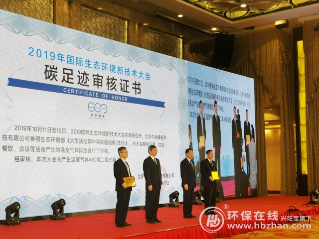 圖為2019國際生態(tài)環(huán)境新技術(shù)大會(huì) 中創(chuàng)碳投榮獲證書