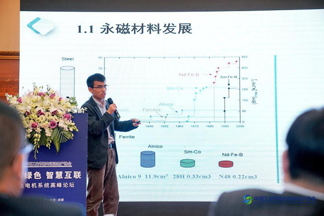 沈陽工業(yè)大學(xué)張炳義教授發(fā)表了《稀土永磁電機(jī)直驅(qū)系統(tǒng)的趨勢》演講。