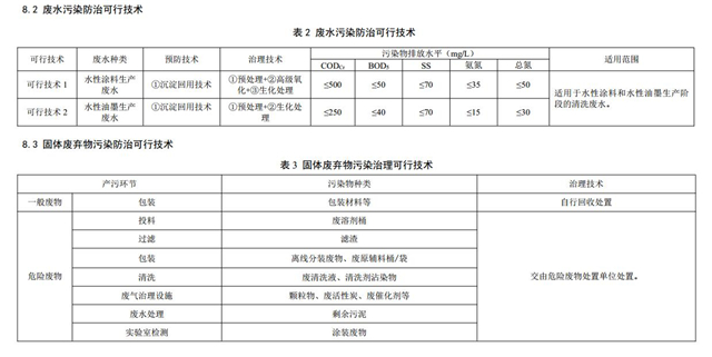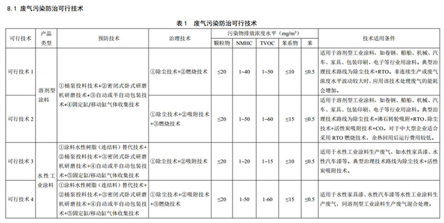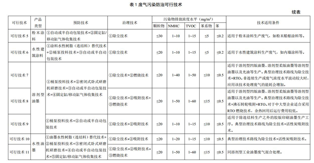 根據(jù)我國一定時期內(nèi)環(huán)境需求和經(jīng)濟水平,在污染防治過程中綜合采用污染預防技術(shù)、污染治理技術(shù)和環(huán)境管理措施,使污染物排放穩(wěn)定達到國家涂料油墨工業(yè)污染物排放標準的要求、規(guī)模應(yīng)用的技術(shù)。