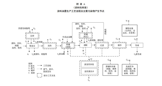 原輔料和危險廢物貯存。顆粒物主要產(chǎn)生于固體原輔料的投料、預混合、研磨、調(diào)配和過濾工序。涂料油墨不同生產(chǎn)工藝類型單位產(chǎn)品VOCs 基準產(chǎn)生量及產(chǎn)生濃度水平見附錄B,涂料油墨生產(chǎn)企業(yè)應(yīng)優(yōu)先控制的大氣有機污染物見附錄C。