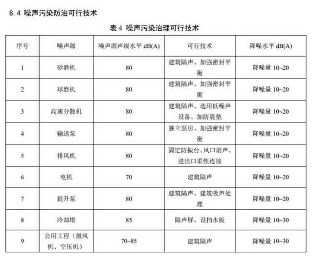 4.2.1.4 涂料工業(yè)企業(yè)產(chǎn)生的噪聲主要來自于生產(chǎn)過程中使用的生產(chǎn)設(shè)備(如砂磨機、球磨機、高速分散機、輸送泵等)和輔助生產(chǎn)設(shè)備(如排風機、電機、提升泵、鼓風機、空壓機等)運行。