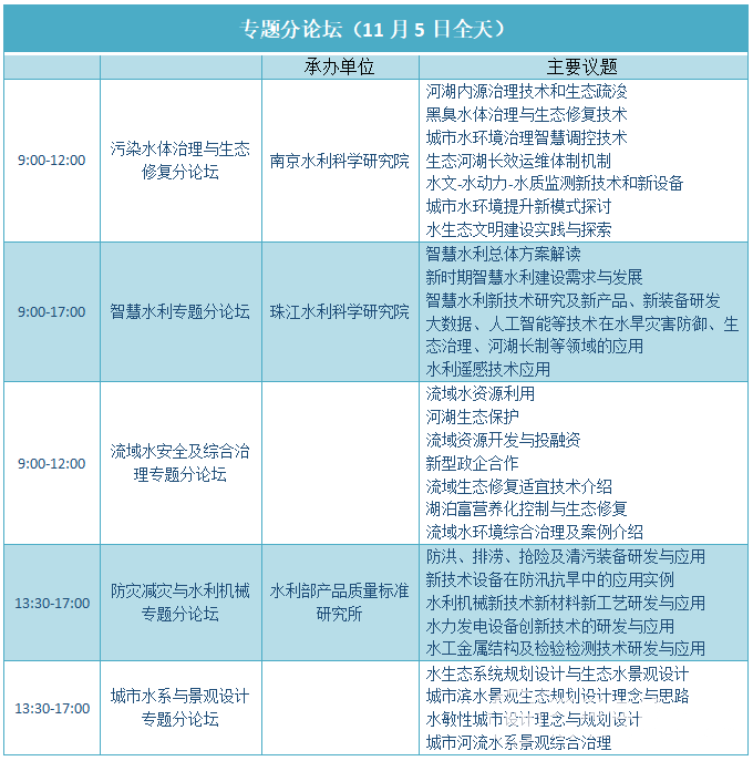 具體聊什么?在11月5日的論壇現(xiàn)場,強(qiáng)勁的專家陣容及企業(yè)代表將通過上述主題切入新時期水利工作重點及方向、強(qiáng)監(jiān)管與補(bǔ)短板、污染水體治理與生態(tài)修復(fù)、智慧水利、水利機(jī)械設(shè)備、防災(zāi)減災(zāi)、流域水安全與綜合治理板塊,全面解析水環(huán)境治理市場格局如何重構(gòu)和變革,提前劇透一下:
